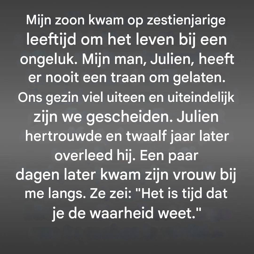 Jarenlang dacht ik dat mijn man, Julien, niet in staat was zijn emoties te tonen. Gereserveerd, discreet, bijna ongevoelig. Toen onze tienerzoon ons plotseling verliet, werd ik overweldigd door immens verdriet. Ik moest huilen, praten, soms zelfs schreeuwen. Julien daarentegen bleef kalm. Rustig. Stil.