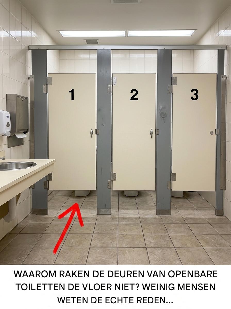 Je hebt jezelf waarschijnlijk wel eens afgevraagd, als je een openbaar toilet binnenstapt: waarom raken de deuren de vloer nooit? Deze opening lijkt misschien vreemd, zelfs onhandig, maar hij is er niet voor niets. Achter dit detail schuilen verschillende praktische redenen die te maken hebben met veiligheid, hygiëne, ventilatie en zelfs menselijk gedrag. Een simpele opening van slechts een paar centimeter kan de ruimte daadwerkelijk veiliger en gemakkelijker schoon te maken maken.