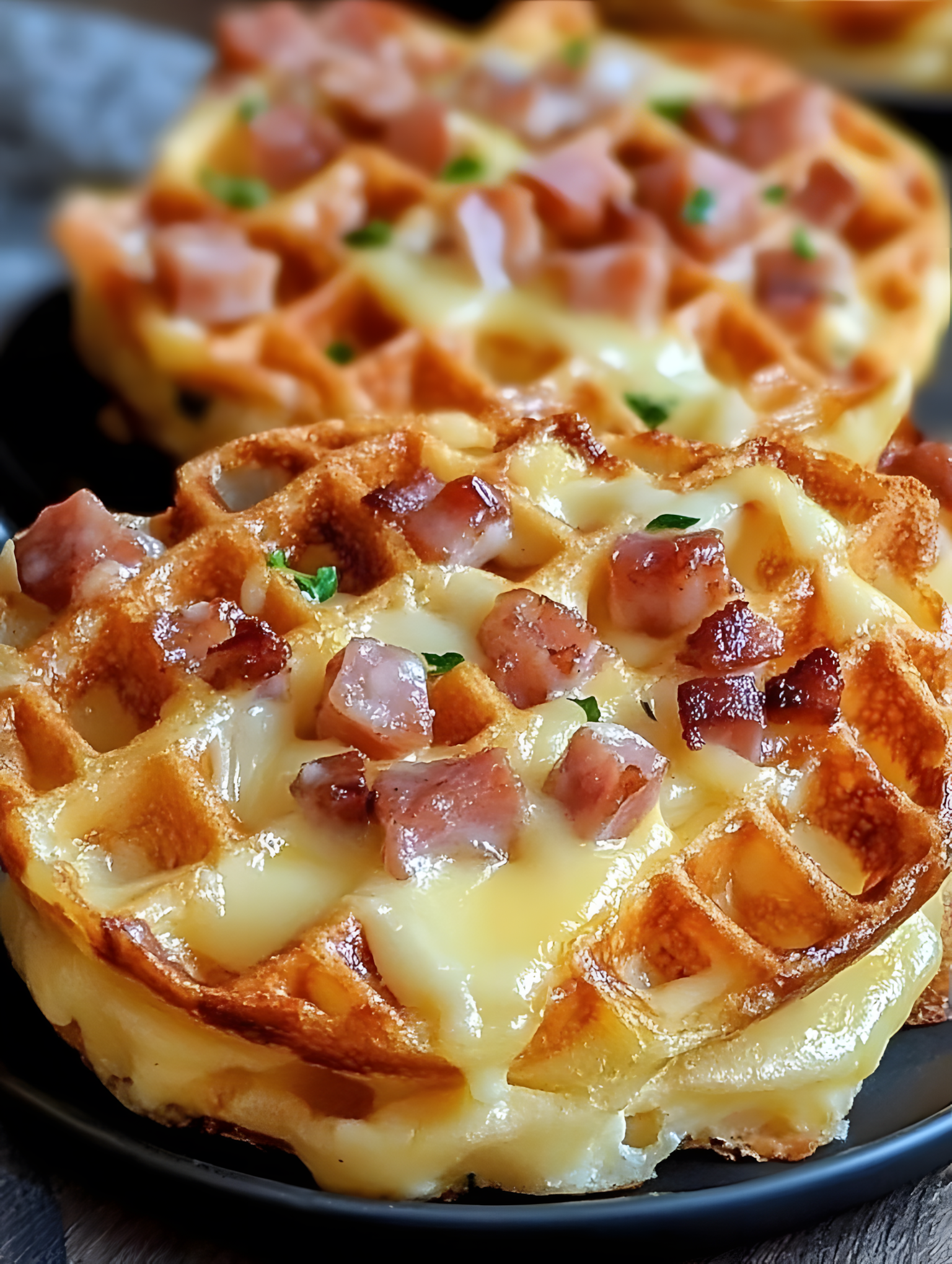 Kijk maar naar die foto… wie kan deze goudbruine, kaas-smeltende, ham-gevulde wafels weerstaan? 🤤 Deze hartige wafels met ham en gesmolten kaas zijn niet alleen verrukkelijk, maar ook super eenvoudig te maken! Perfect voor ontbijt, brunch of als stevige snack. 💛