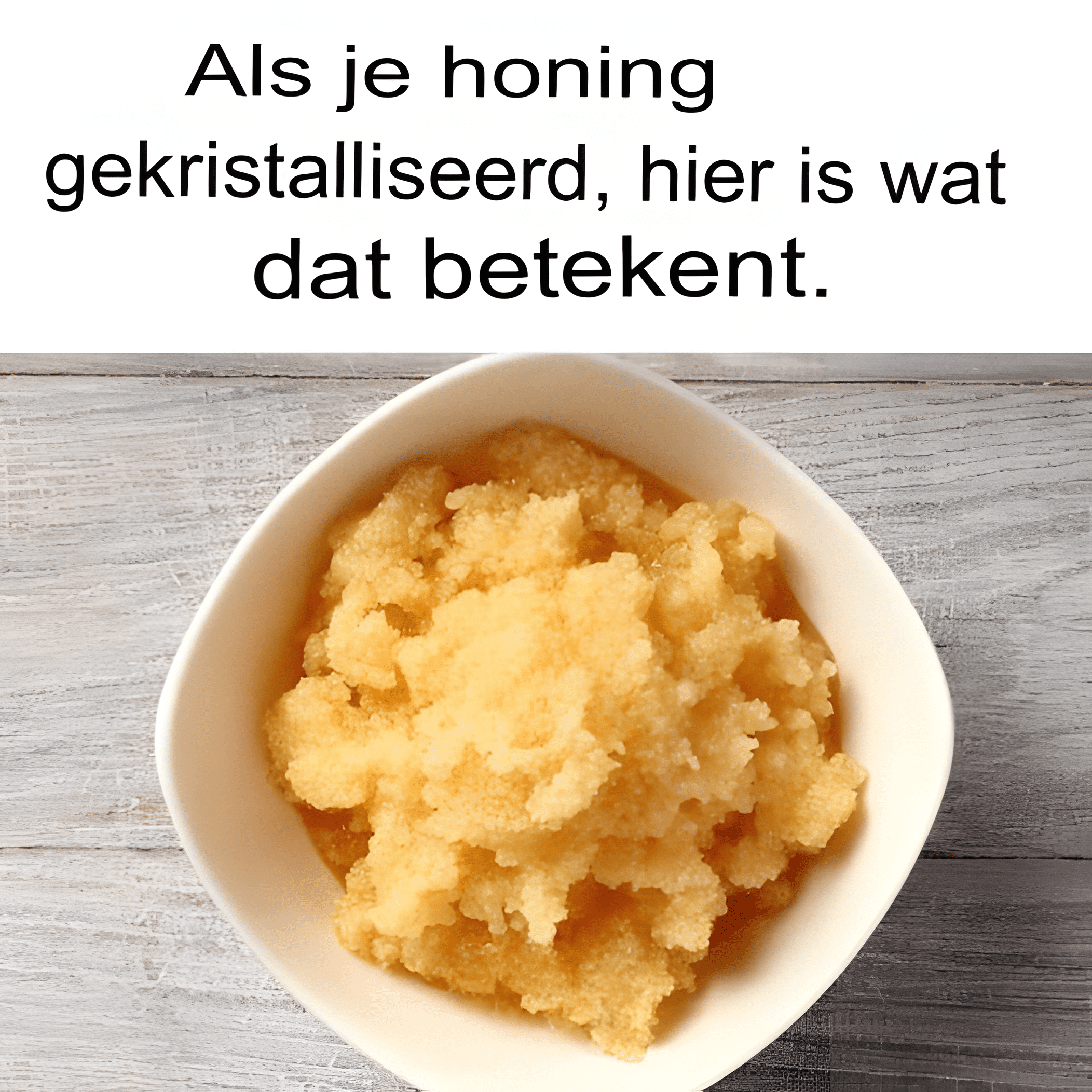 - Natuurlijke samenstelling: Honing is een oververzadigde oplossing van glucose en fructose. Na verloop van tijd kristalliseert de glucose.