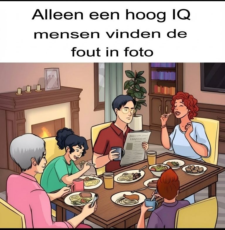 Er zit een opvallende fout in deze afbeelding van een familiediner. Kunt u hem vinden? Test uw observatievaardigheden met deze visuele puzzel. Waarschuwing: u hebt maar 10 seconden!