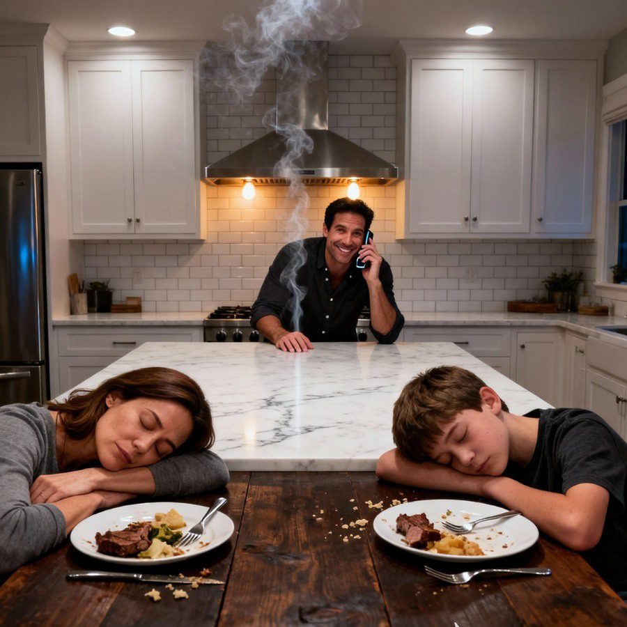 We aten kip met rijst, een maaltijd die troostrijk had moeten zijn. Ethan raakte zijn bord nauwelijks aan. Hij bleef maar naar zijn telefoon kijken, die met het scherm naar beneden naast zijn vork lag, alsof die elk moment kon trillen om toestemming te vragen.