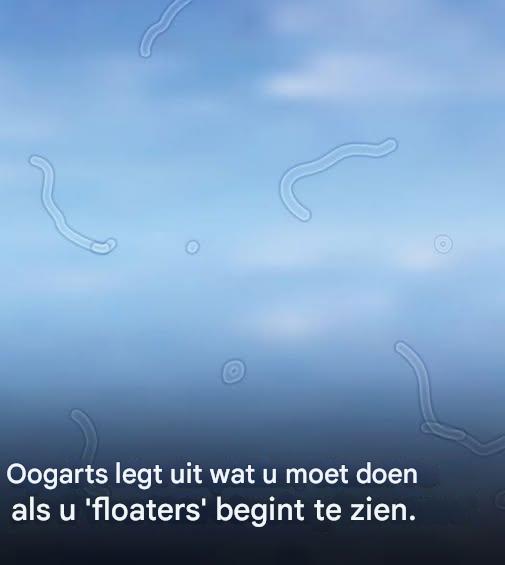 Oogfloaters zijn die vervelende vlekjes, sliertjes of spinwebben die door je gezichtsveld zweven, vooral tegen een heldere achtergrond zoals een blauwe lucht of een witte muur.
