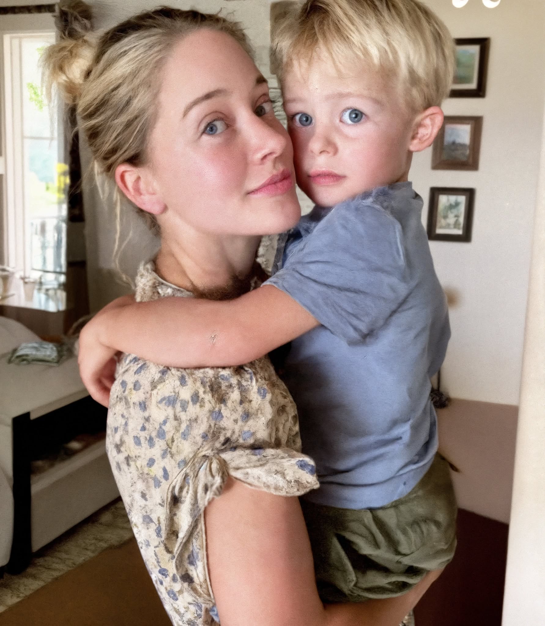 Mijn vingers speelden met het kleine blauwe truitje dat ik voor Sam, onze toekomstige zoon, had gekocht. De stof was ongelooflijk zacht en ik kon me al voorstellen hoe het hem comfortabel om zijn kleine schoudertjes zou passen.