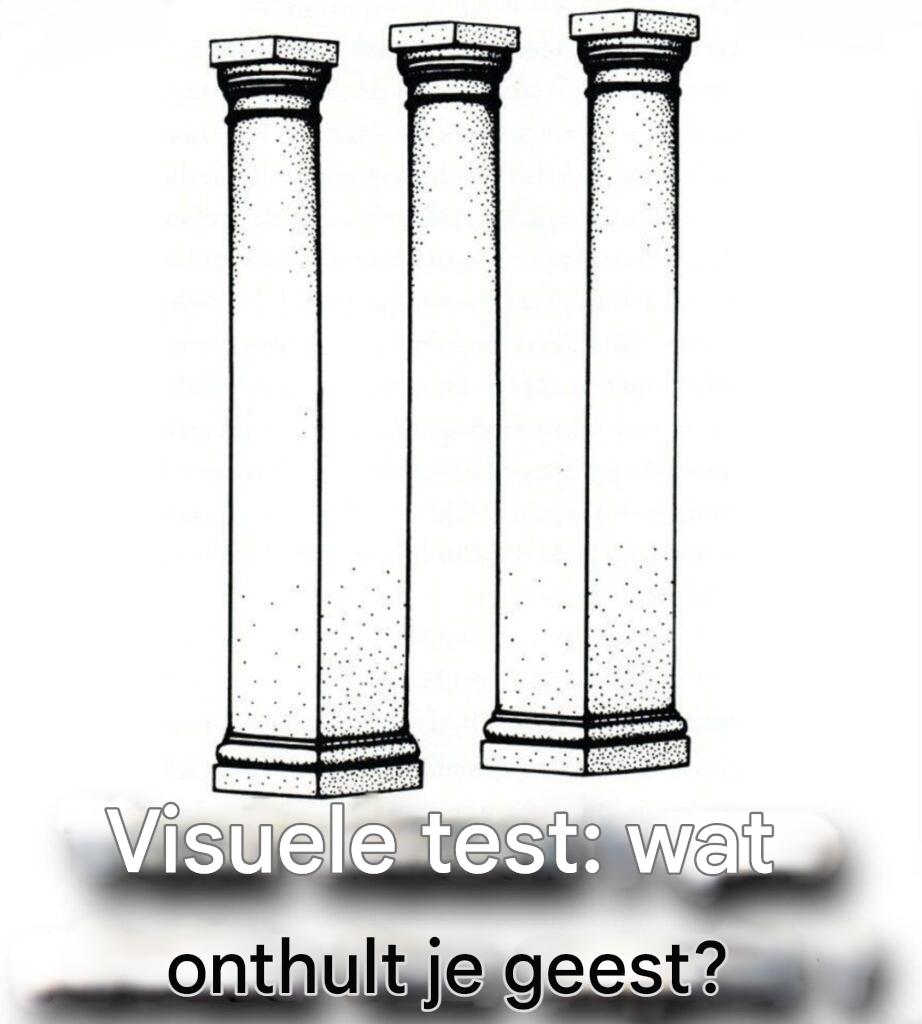 Deze afbeelding toont drie ogenschijnlijk identieke kolommen. Toch denken veel mensen op het eerste gezicht dat een van de kolommen langer of korter is dan de andere. Dit verschil is niet reëel: het is een subtiele optische illusie, en hier begint de persoonlijkheidstest op basis van afbeeldingen.