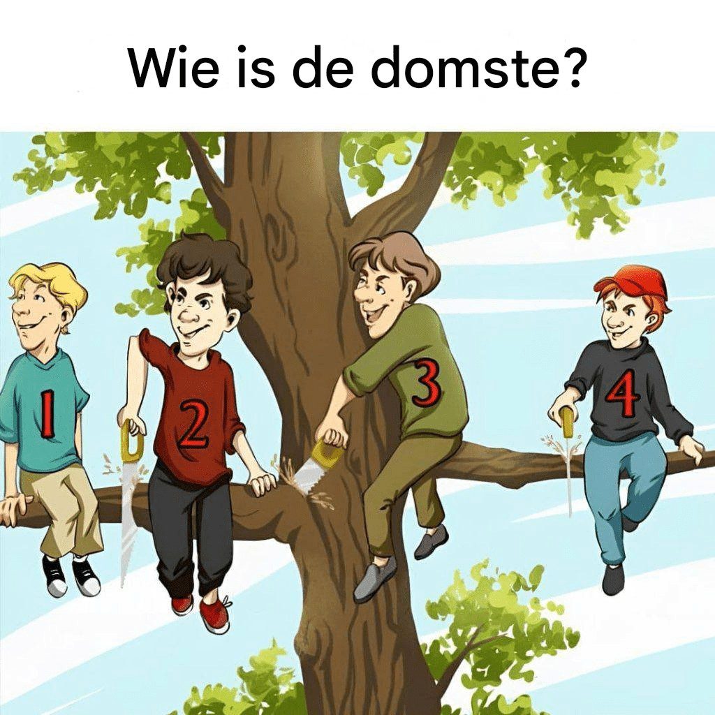 Stel je voor: vier kinderen zitten comfortabel in de takken van een grote boom. De zon schijnt, de sfeer is zorgeloos… totdat iemand besluit een zaag tevoorschijn te halen. En dan verandert alles!
