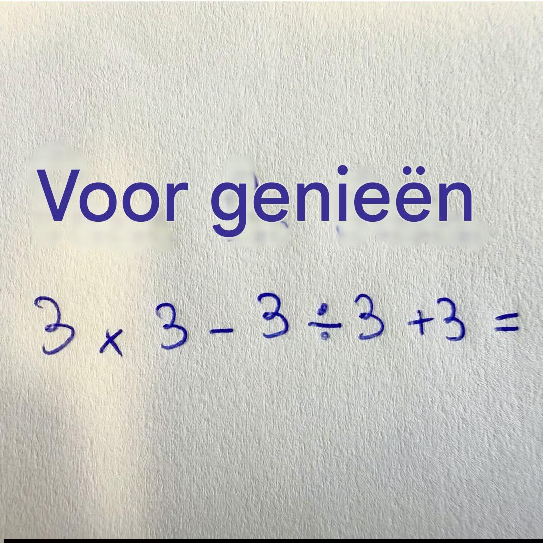 Los stap voor stap op: 3 × 3 + 3 ÷ 3 – 3