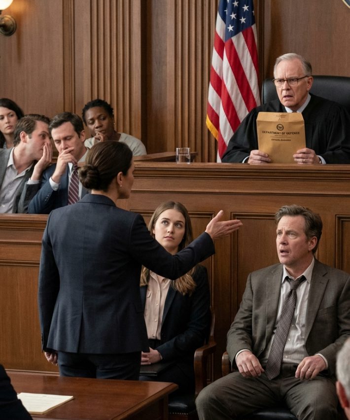 ‘Ze heeft geen dag gewerkt sinds haar studietijd,’ vertelde mijn vader de jury terwijl hij me beschuldigde van diefstal uit het trustfonds van mijn overleden moeder. Vervolgens overhandigde mijn advocaat de rechter een verzegelde envelop van het Pentagon. De rechter zette langzaam zijn bril af en zei: ‘Allen staan.’