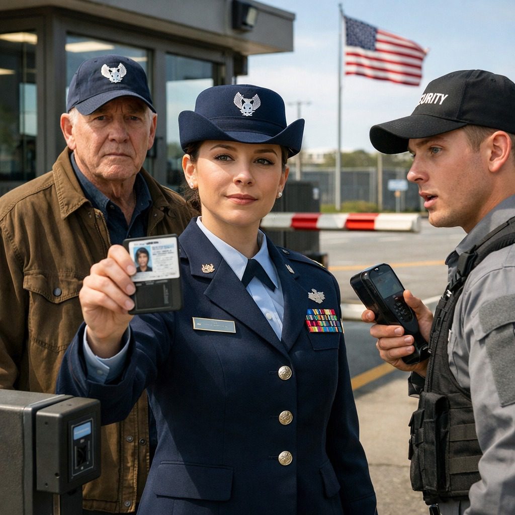 « Ze is gewoon een burger, » zei mijn vader tegen de bewaker bij de poort van een Amerikaanse basis. Toen scande de scanner het insigne op mijn borst, toonde een presidentieel zegel, en diezelfde man die me had leren salueren, had ineens geen idee meer wie zijn eigen dochter werkelijk was.
