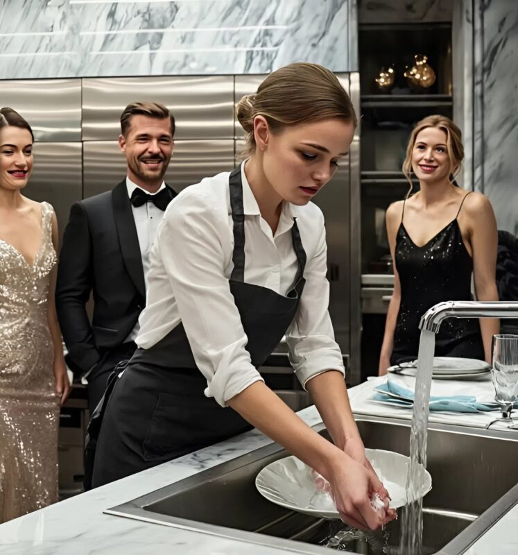 Voor de gasten was ik gewoon een van de hulpen — in een eenvoudige, zwarte uniform, onzichtbaar en, zoals bleek, bijna “transparant”.