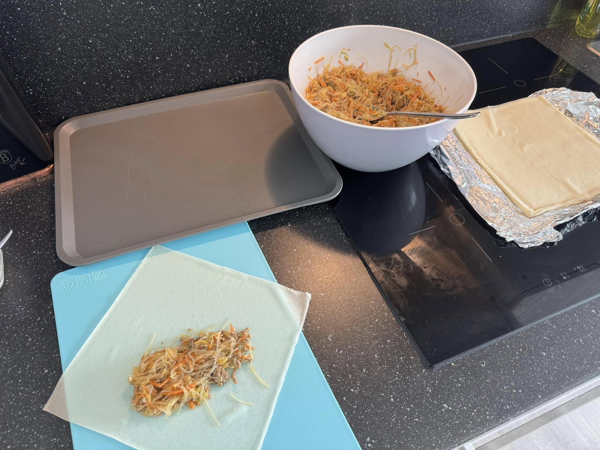 12 loempiavellen (uit de diepvries, laat ontdooien)